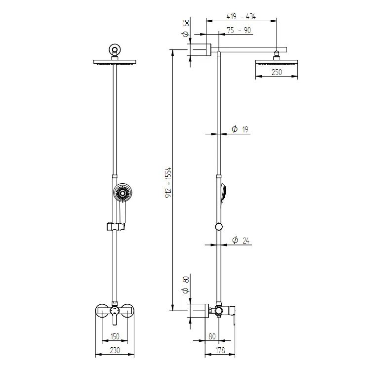 DuschMaster Rain mit Einhebelmischer, White Style, 230 x 912-1554 mm