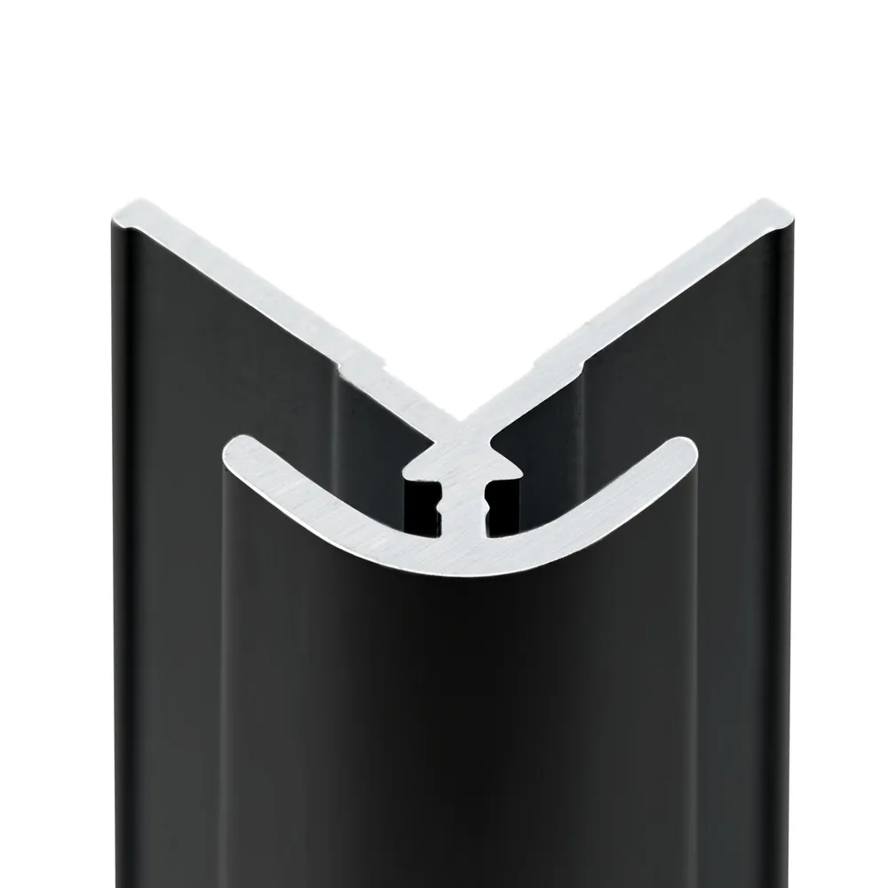 Mit diesem DecoDesign-Profil erhalten Sie die Möglichkeit, zwei Duschrückwände über eine Ecke optimal und lückenlos zu verbinden. Die Montage kann optional auf einem bestehenden Fliesenspiegel oder einer veputzten Wand erfolgen. Diese Variante des Verbindungsprofils „auf Ecke“ wird in der Farbe Schwarz geliefert.