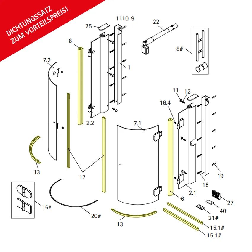 Dichtungssatz für Halbkreisdusche (Chromoptik)