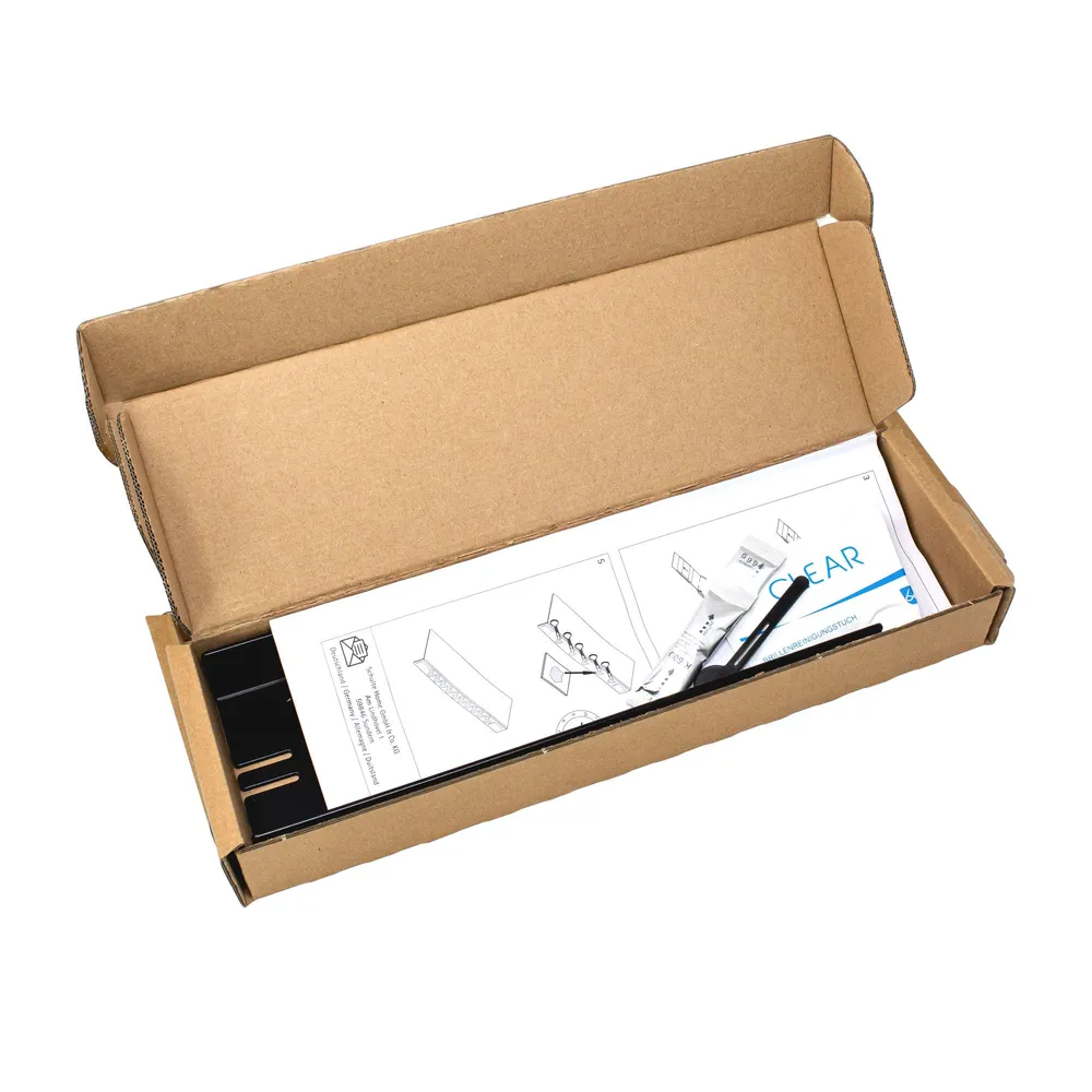 Lieferumfang: Duschablage, Klebematerial, zusätzliche Blende für die Anbringung an einer Walk In, bebilderte Montageanleitung