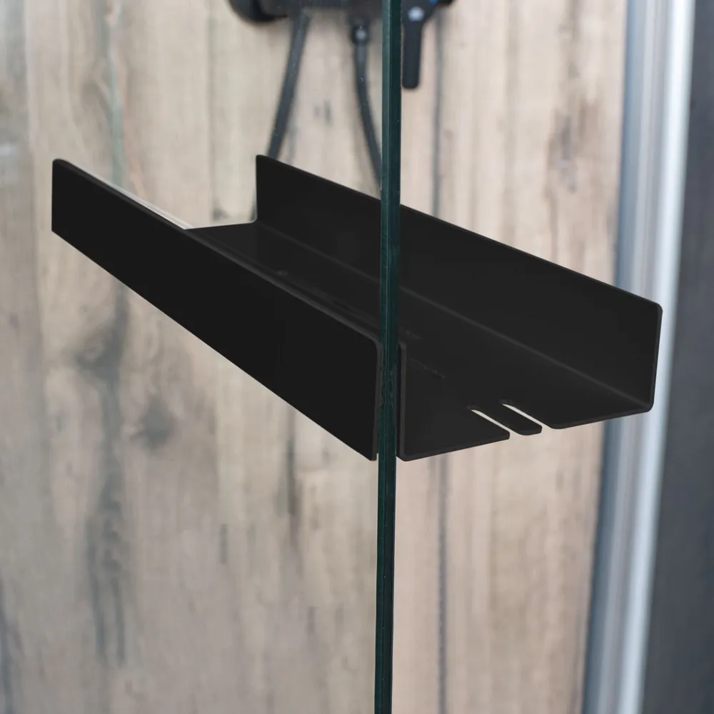 • Duschablagen und Haken zum Hängen sind für die Installation an feststehenden rahmenlosen Duschabtrennungen bestimmt.