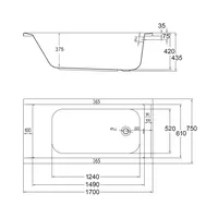 Badewanne - Como, Alpinweiß, 1700x750 mm