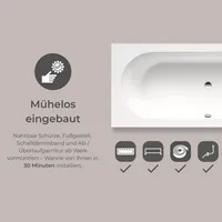 - Lieferumfang 1 x Badewanne, 1 x Fußgestell, 1 x Ab- /Überlauf, 1 x Schalldämmband (vormontiert)
