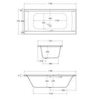 Badewanne - Onda, Alpinweiß, 1700x750 mm, inkl. Fußgestell und Ab- /Überlauf