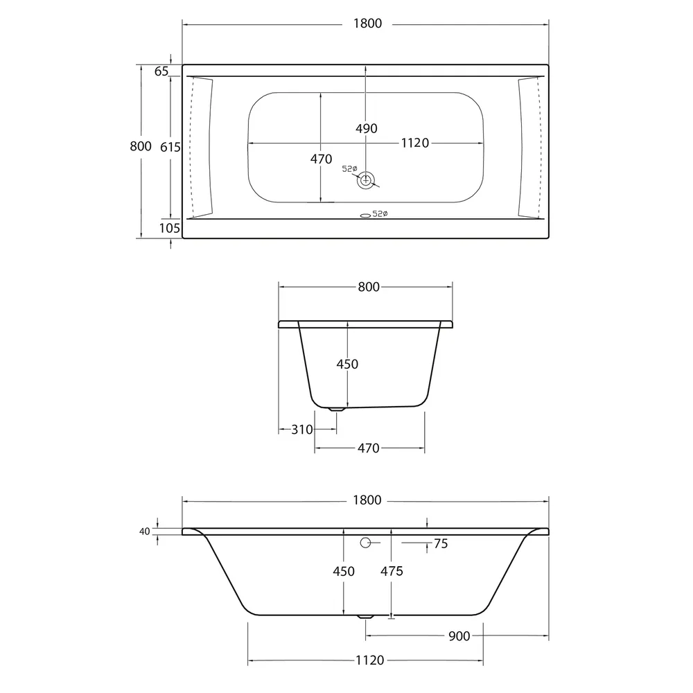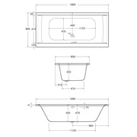 Badewanne - Onda, Alpinweiß, 1800x800 mm, inkl. Wannenträger und Ab- /Überlauf