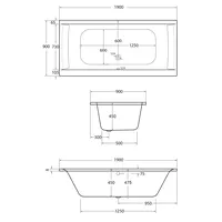 Badewanne - Onda, Alpinweiß, 1900x900 mm, inkl. Wannenträger und Ab- /Überlauf