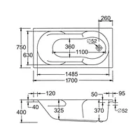 Badewanne - Ozea, Alpinweiß, 1700x750 mm, inkl. Wannenträger und Ab- /Überlauf