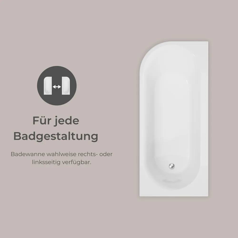 Badewanne - Rio Canto, rechte Ausführung, Alpinweiß, 1700x750 mm, inkl. Fußgestell und Ab- /Überlauf (vormontiert)
