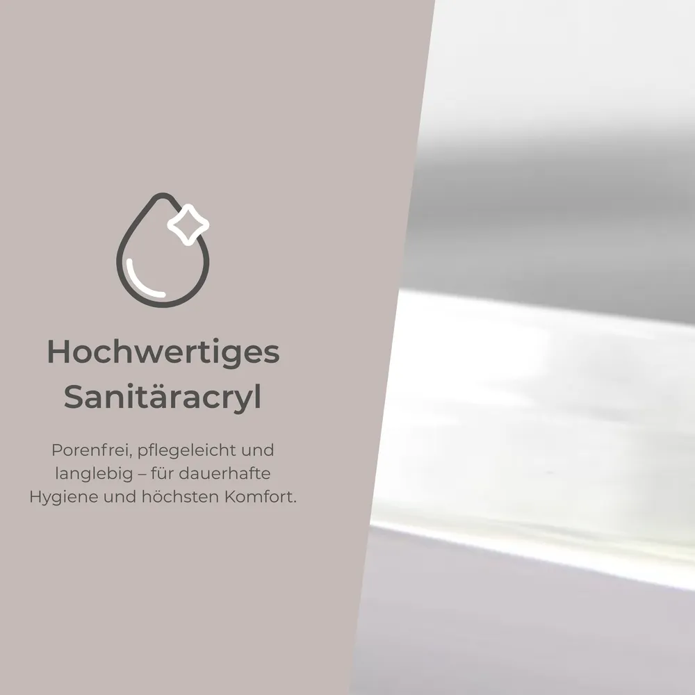 Hochwertiger, durchgefärbter und strapazierfähiger Sanitär-Acryl, Robuste Konstruktion durch doppelwandige Bauweise