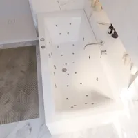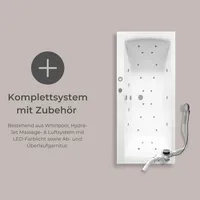 Whirlpool-Badewanne mit Hydra-Jet Massage: 5 richtungsverstellbare Jets, 8 Micro-Jets (je 4 für Rücken & Füße) plus 12 Luftdüsen im Wannenboden – intensive Wasser- und Luftmassage für Ihr Home-Spa.