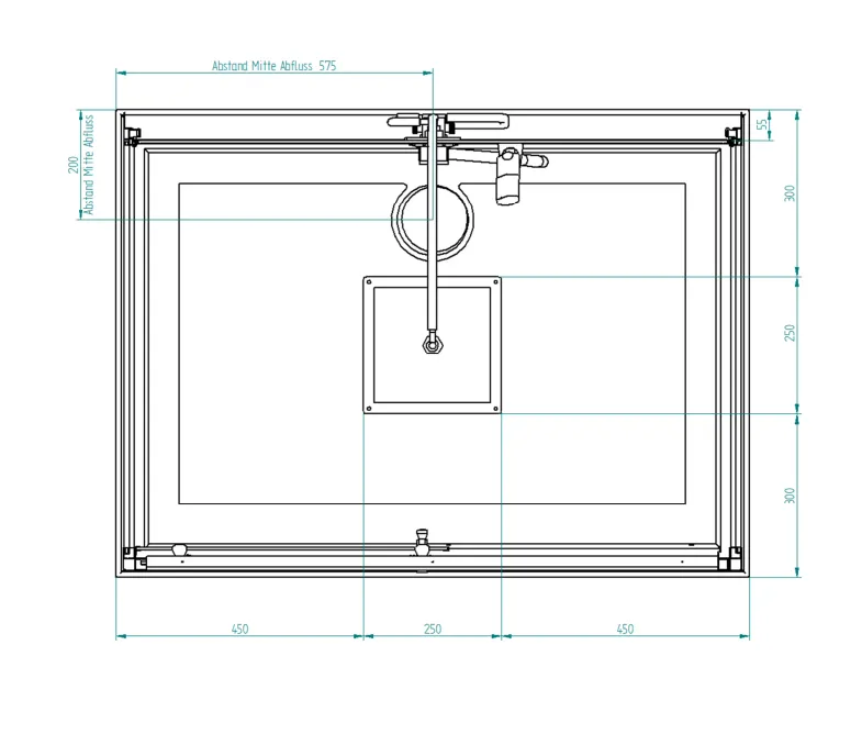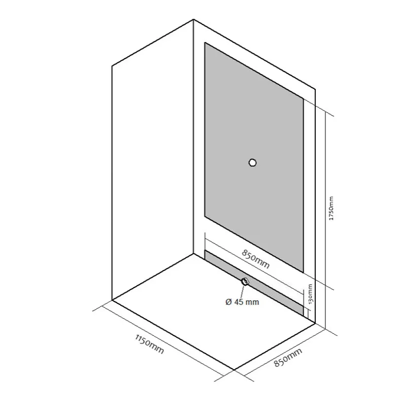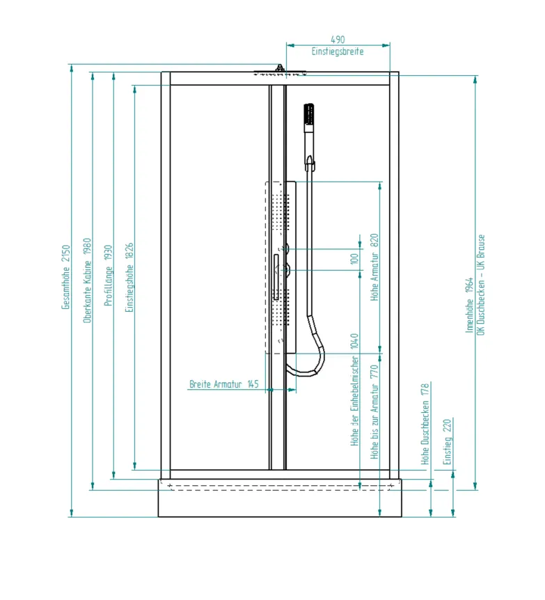490 mm - Duschwannenmaß (rechts) 850 mm