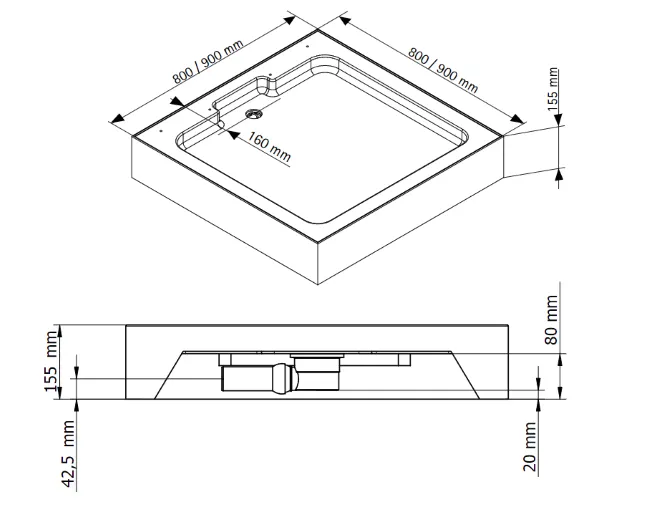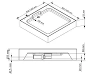 800 mm - Duschwannenmaß (rechts) 800 mm