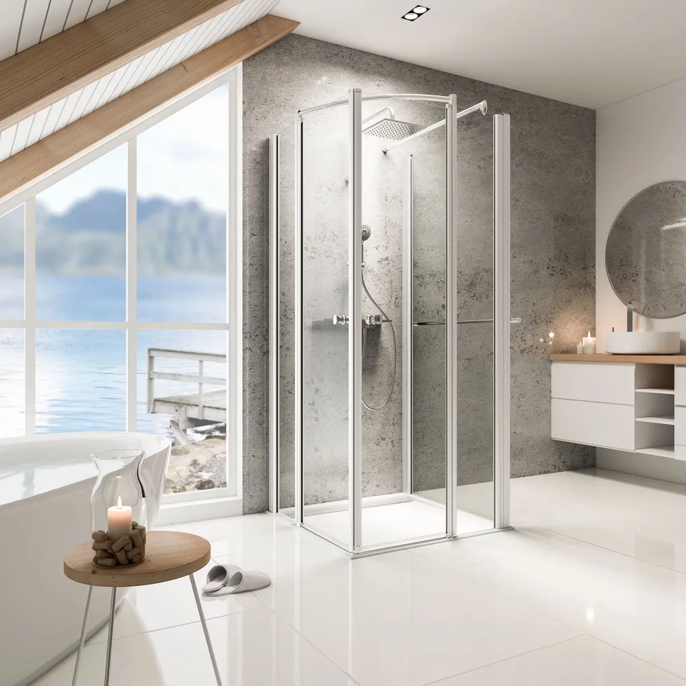 - vielseitige Kombinationsmöglichkeiten mit einer weitereren Drehtür oder Seitenwand