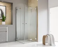 Toura - Drehfalttür als Eckeinstieg, 1000x1000 mm, 2000 mm, Scharnier „Schmal“, 41 - Chromoptik, Nebel, versiegelt