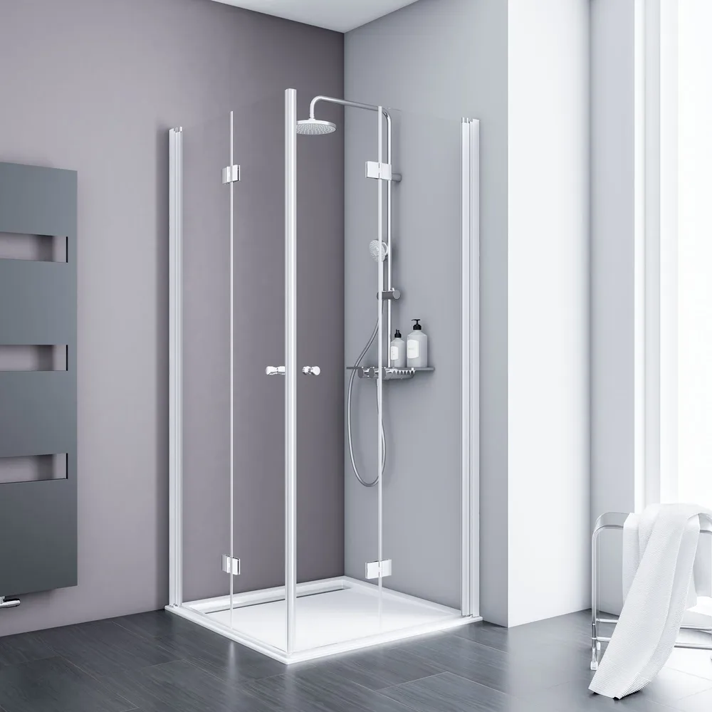 Alexa Style 2.0 - Drehfalttür als Eckeinstieg, 800x800 mm, 1920 mm, Eckig, Alpinweiß, Klar hell, versiegelt