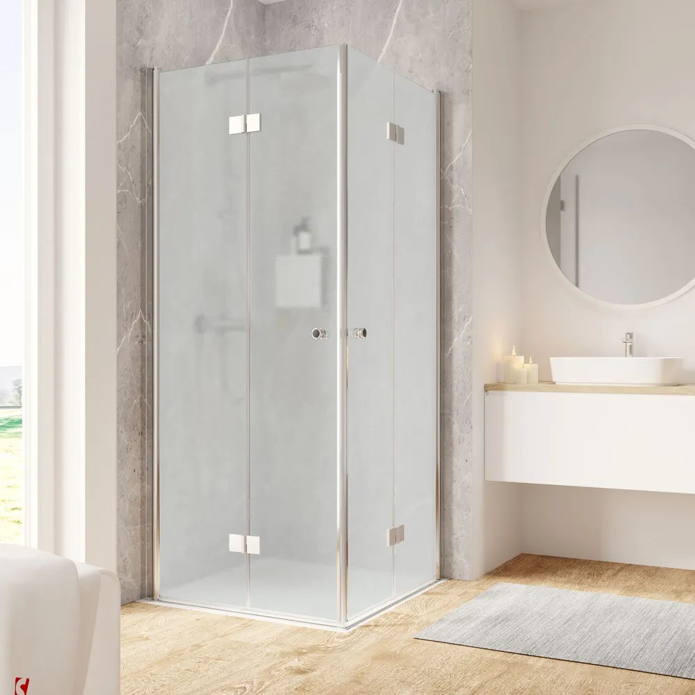 Garant 2.0 - Drehfalttür als Eckeinstieg, 900x900 mm, 2000 mm, Eckig (Heb-Senk), Chromoptik, Matt-Satiniert