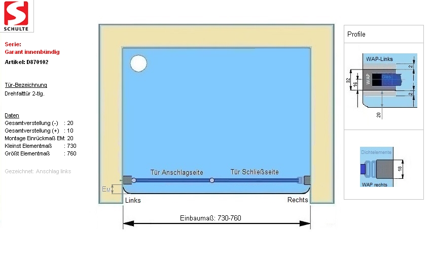 Scharnierform und Verstellbereich können einen entscheidenden Unterschied in der Bemaßung machen. Wenn Sie unsicher sind, wenden Sie sich bitte direkt an unseren Service.