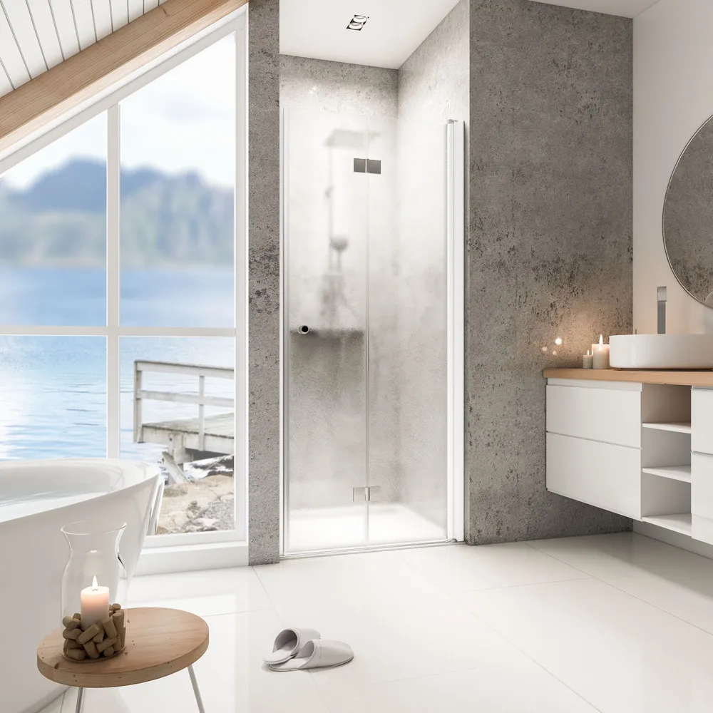 - Langlebiges, qualitativ hochwertiges Drehlager mit integriertem Heb-Senk-Mechanismus: verbesserte Dichtigkeit, reduzierter Verschleiß, komfortables Bewegen der Duschtür