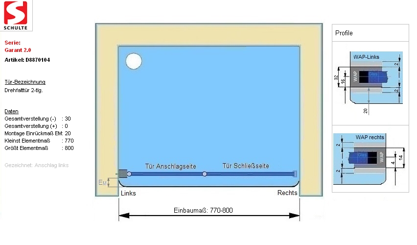 - Duschwanneneinbaumaß (rechts) 770-800 mm