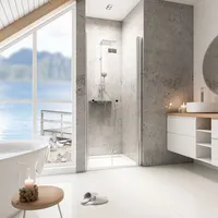 - Langlebiges, qualitativ hochwertiges Drehlager mit integriertem Heb-Senk-Mechanismus: verbesserte Dichtigkeit, reduzierter Verschleiß, komfortables Bewegen der Duschtür