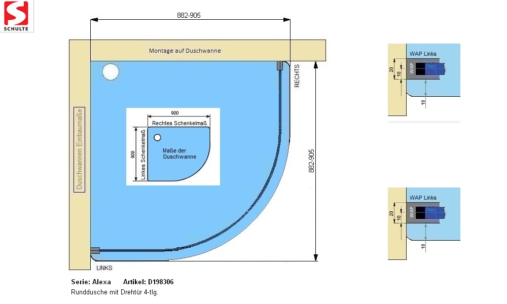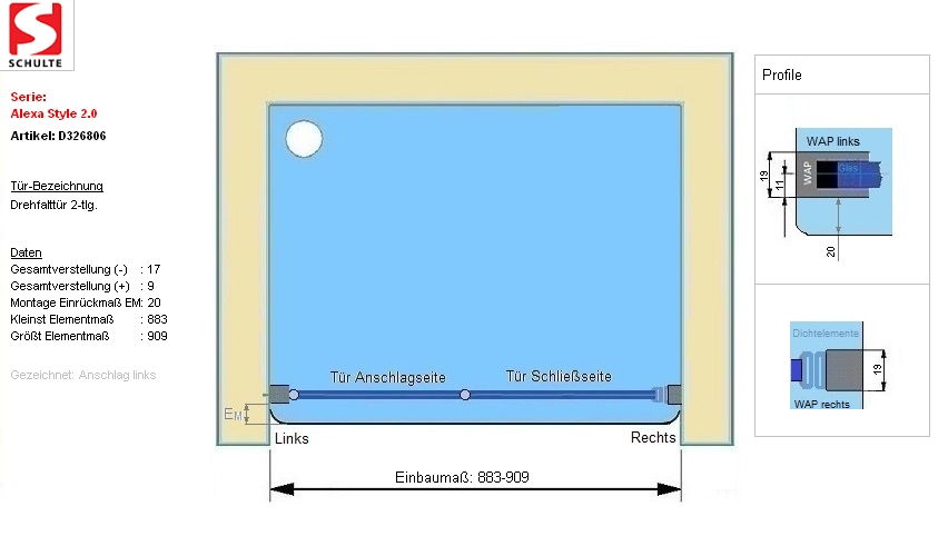 - Duschwanneneinbaumaß (rechts) 883-909 mm