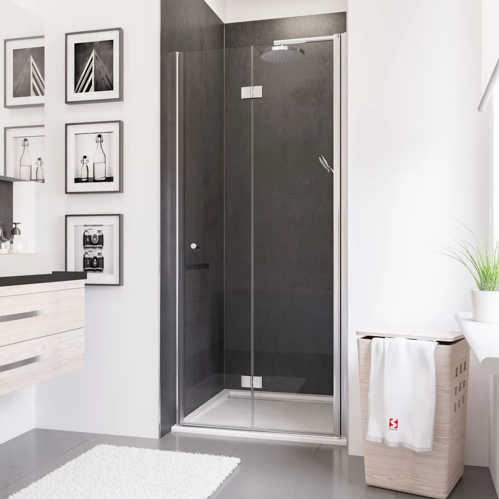Alexa Style 2.0 - Drehfalttür in Nische, 900 mm, 1920 mm, Eckig, Chromoptik, Klar hell