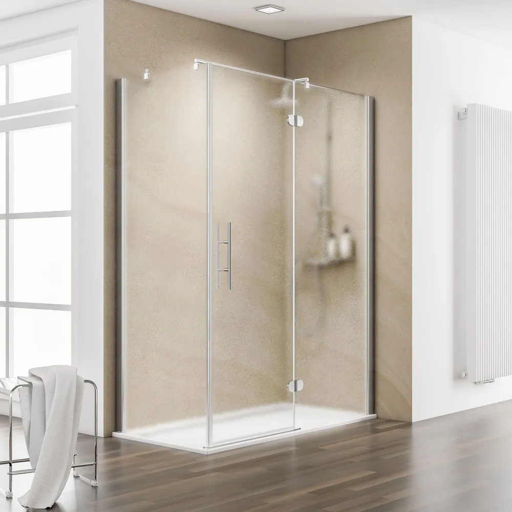 MasterClass - Drehtür an Nebenteil für SeitenwandDuschkabinenserie MasterClass Die Serie MasterClass gilt als Luxusklasse der Marke Schulte. Die teilgerahmte Optik der Duschkabinen mit innenbündigen Scharnieren bietet den praktischen Vorteil, dass die Duschabtrennungen ausgesprochen pflegeleicht sind; Schmutz und Kalk können sich nur schwer absetzen. Außerdem ist eine ebenerdige beziehungsweise barrierefreie Montage auf Fliesen sowie eine Montage auf unseren Duschwannen bei allen MasterClass-Modellen möglich. Sie haben zudem die Wahl die Duschkabine mithilfe der mitgelieferten Montageanleitung selbst anzubringen oder unsere fachkundigen Monteure zu buchen.