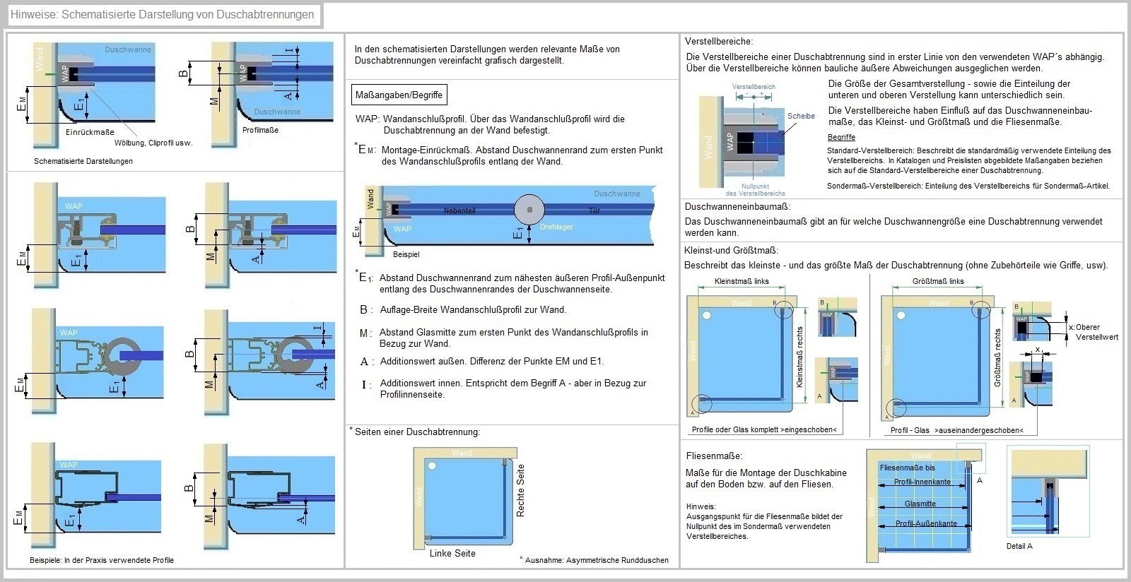 - versetzter Drehpunkt der Tür eignet sich optimale bei bestehenden Regalen, Waschtischen, Heizkörpern etc. im Wandanschlussbereich vor der Duschtür