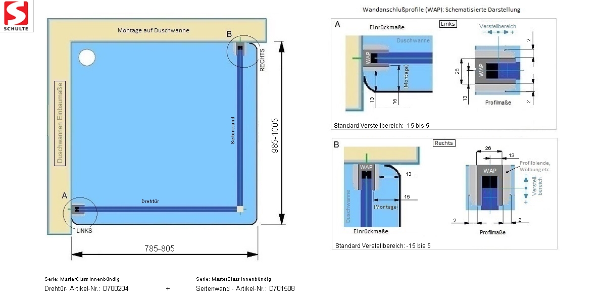 - Einrückmaße und WAP-Profilmaße - Artikel D700204 + D701508