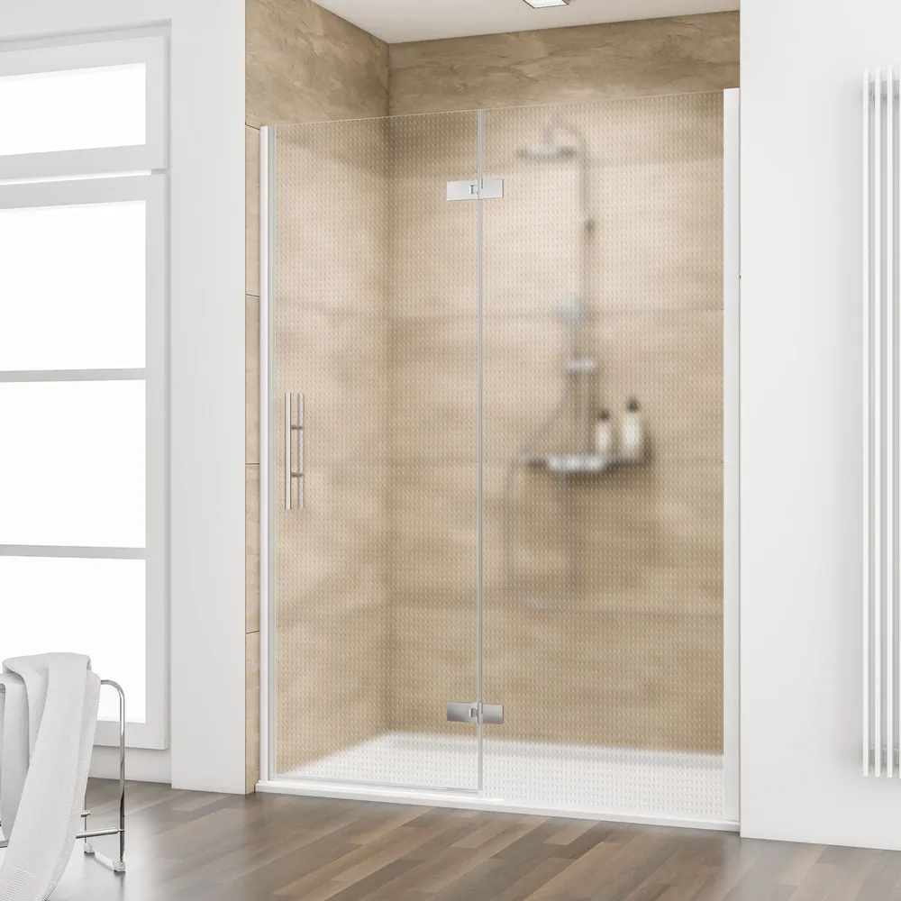 - versetzter Drehpunkt der Tür eignet sich optimale bei bestehenden Regalen, Waschtischen, Heizkörpern etc. im Wandanschlussbereich vor der Duschtür