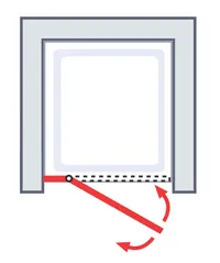 - versetzter Drehpunkt der Tür eignet sich optimale bei bestehenden Regalen, Waschtischen, Heizkörpern etc. im Wandanschlussbereich vor der Duschtür