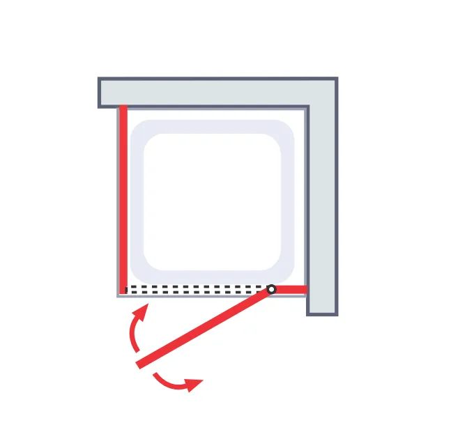 - versetzter Drehpunkt der Tür eignet sich optimale bei bestehenden Regalen, Waschtischen, Heizkörpern etc. im Wandanschlussbereich vor der Duschtür
