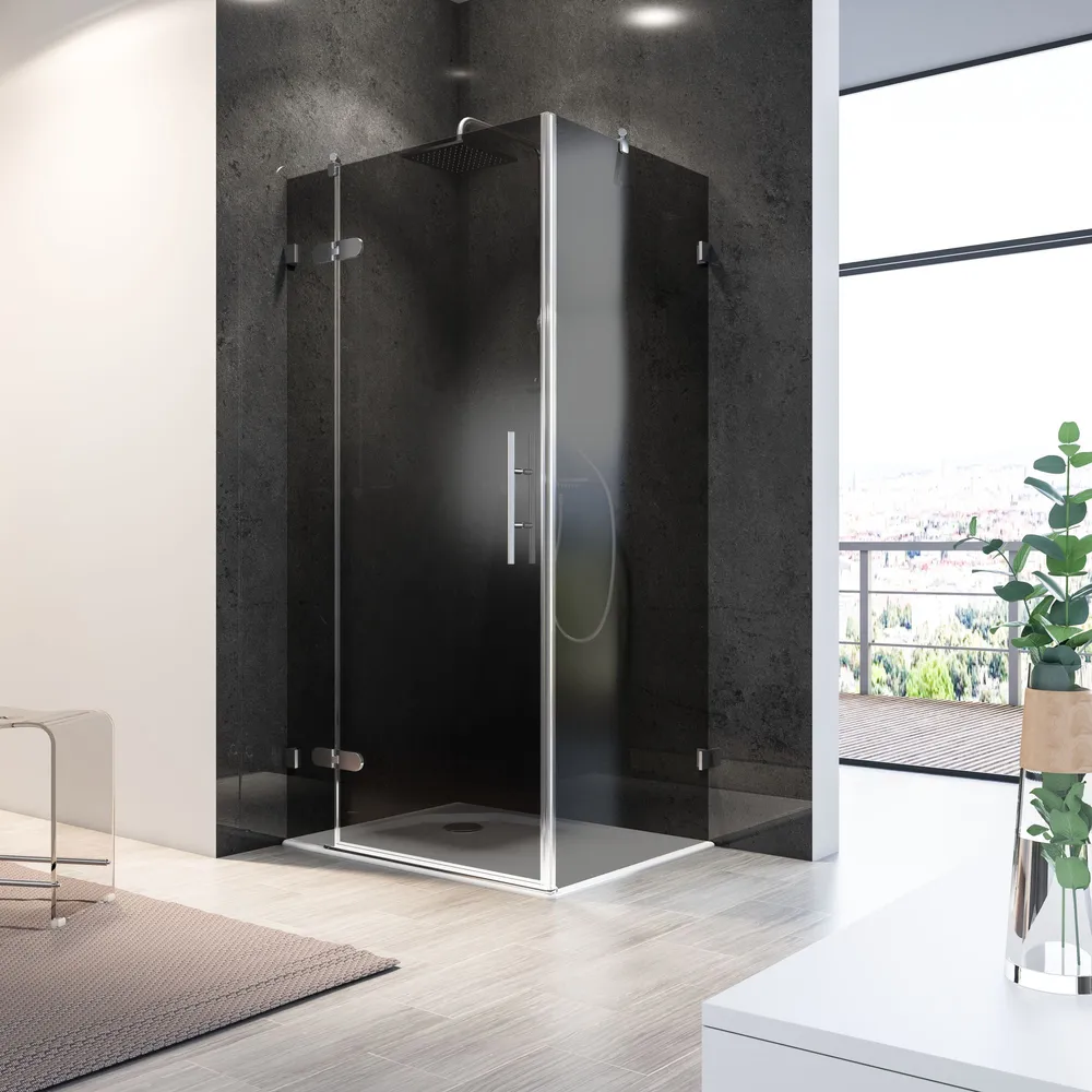 Davita - Drehtür an Nebenteil inklusive Seitenwand, 750-1400 mm, Pendelscharnier „Halbkreis“, Grau-Anthrazit, versiegelt