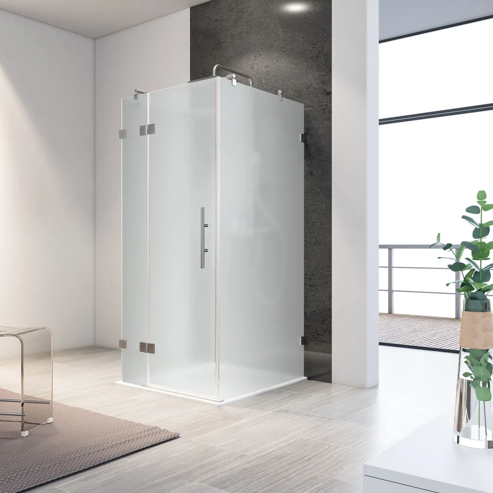 Davita - Drehtür an Nebenteil inklusive zwei Seitenwände (U-Kabine), 250-1600 mm, Eckig (Heb-Senk), Matt-Satiniert, versiegelt