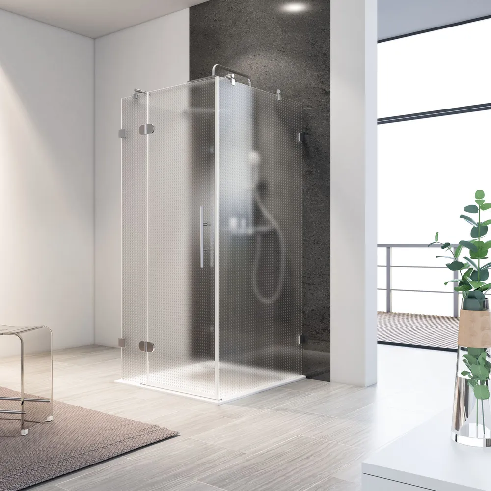 Davita - Drehtür an Nebenteil inklusive zwei Seitenwände (U-Kabine), 250-1600 mm, Halbkreis (Heb-Senk), Carré, versiegelt