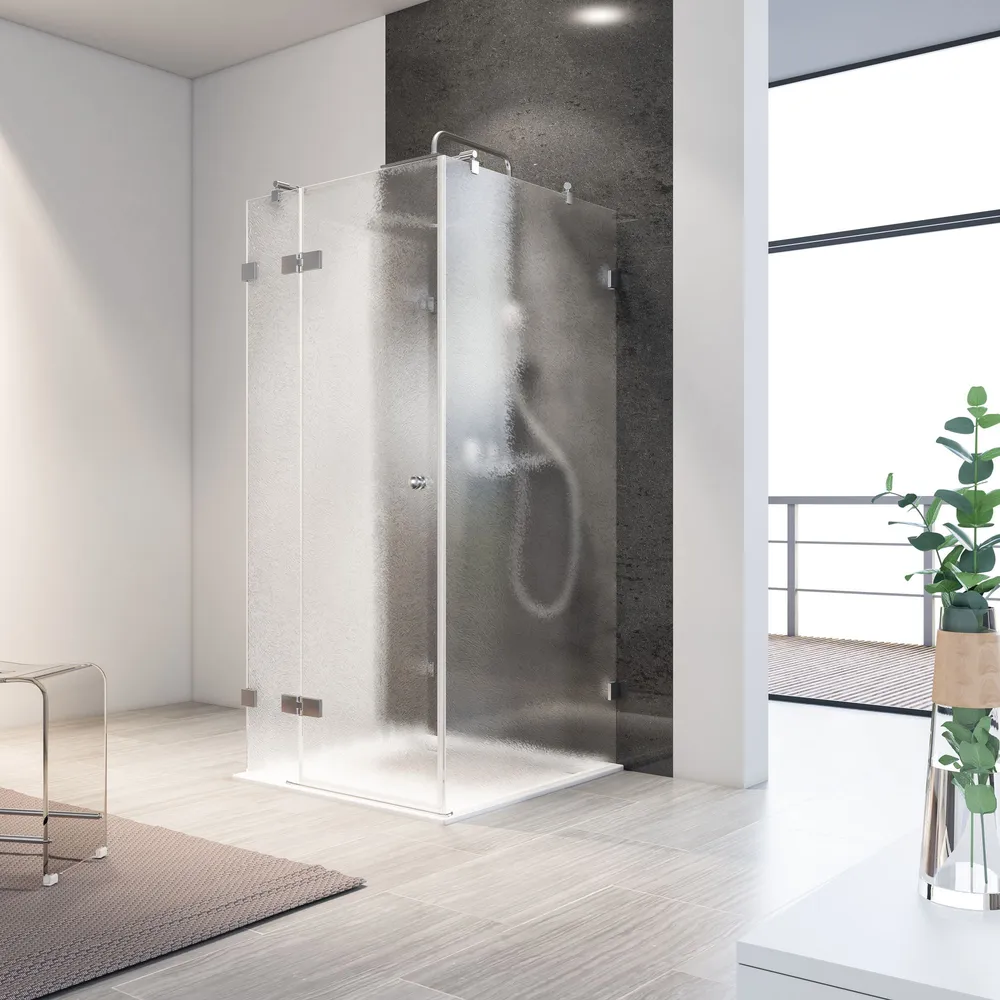 Davita - Drehtür an Nebenteil inklusive zwei Seitenwände (U-Kabine), 250-1600 mm, Pendelscharnier „Eckig“, Bella (Chinchilla-Struktur), versiegelt