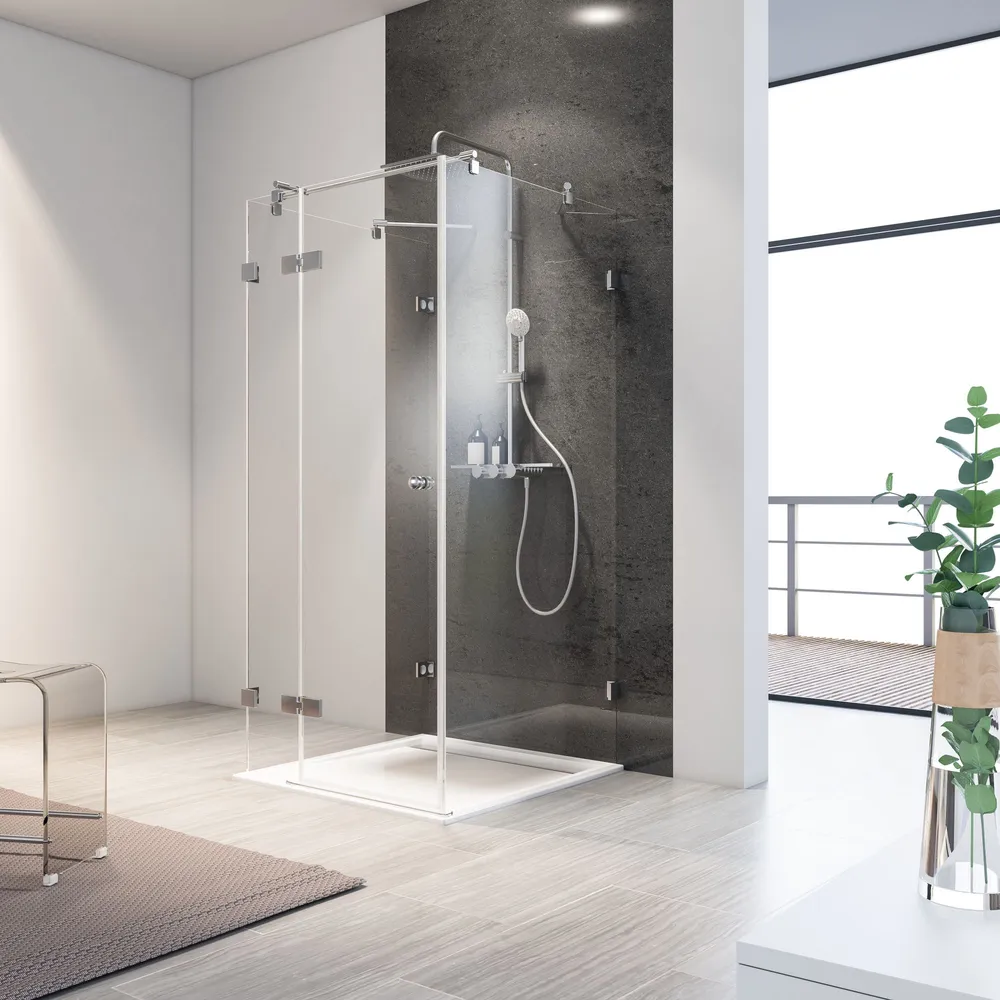 - Optimale Eignung für Schlauchbäder oder für Einbausituationen, in welchen Ecklösungen aufgrund von Fenstern nicht möglich sind