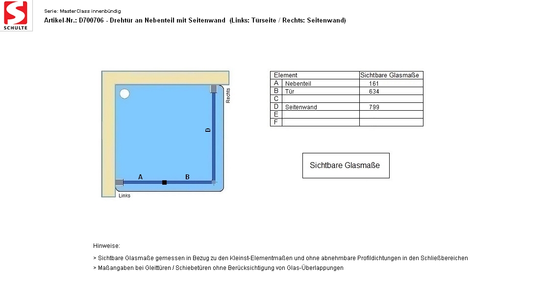 Scharnierform und Verstellbereich können einen entscheidenden Unterschied in der Bemaßung machen. Wenn Sie unsicher sind, wenden Sie sich bitte direkt an unseren Service.
