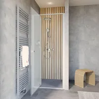 - versetzter Drehpunkt der Tür eignet sich optimale bei bestehenden Regalen, Waschtischen, Heizkörpern etc. im Wandanschlussbereich vor der Duschtür