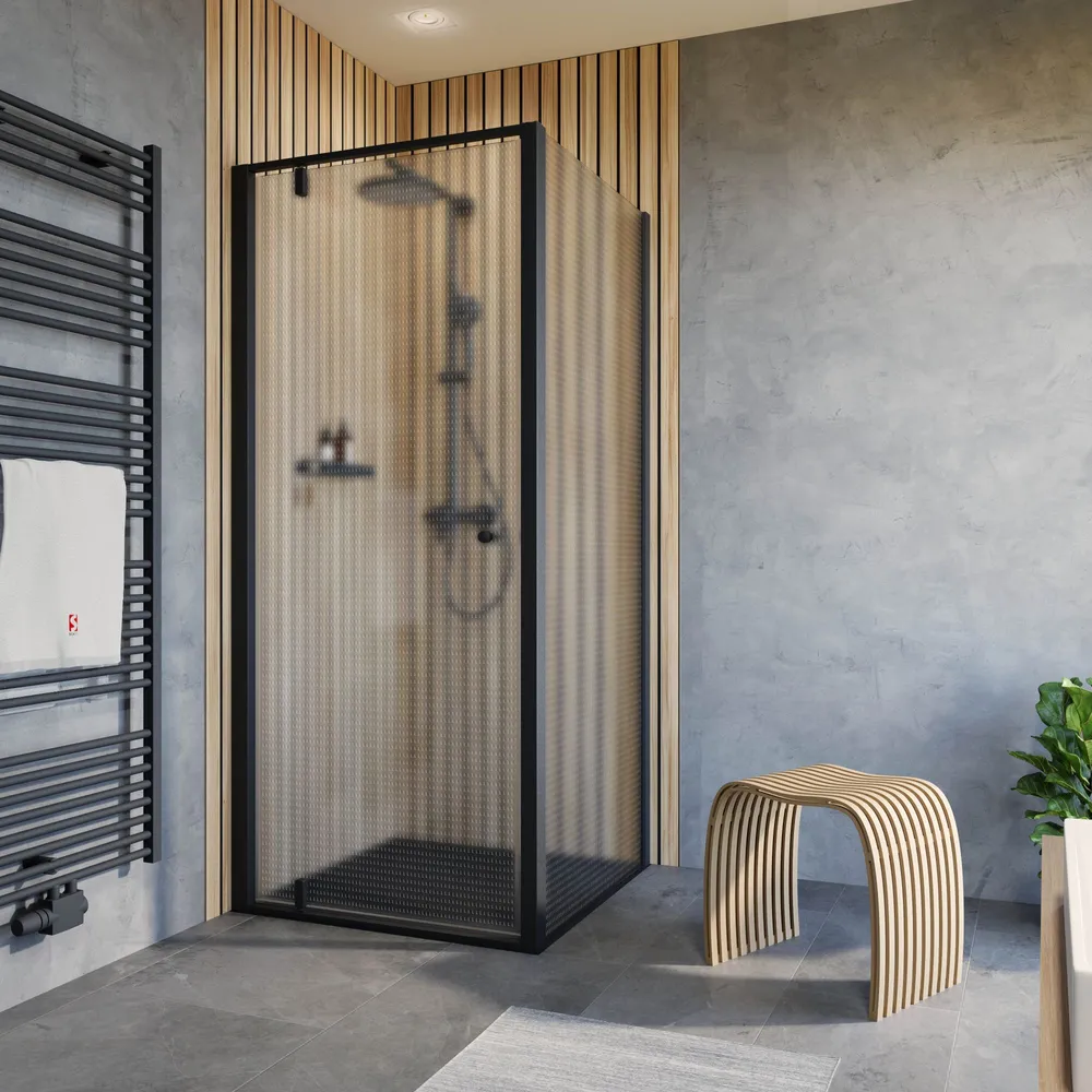 Trend 2.0 - Drehtür inklusive Seitenwand, 800x800 mm, 2000 mm, Mattschwarz, Carré, versiegelt