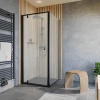 Trend 2.0 - Drehtür inklusive Seitenwand, 900x900 mm, 2000 mm, Mattschwarz, Matt-Satiniert, versiegelt