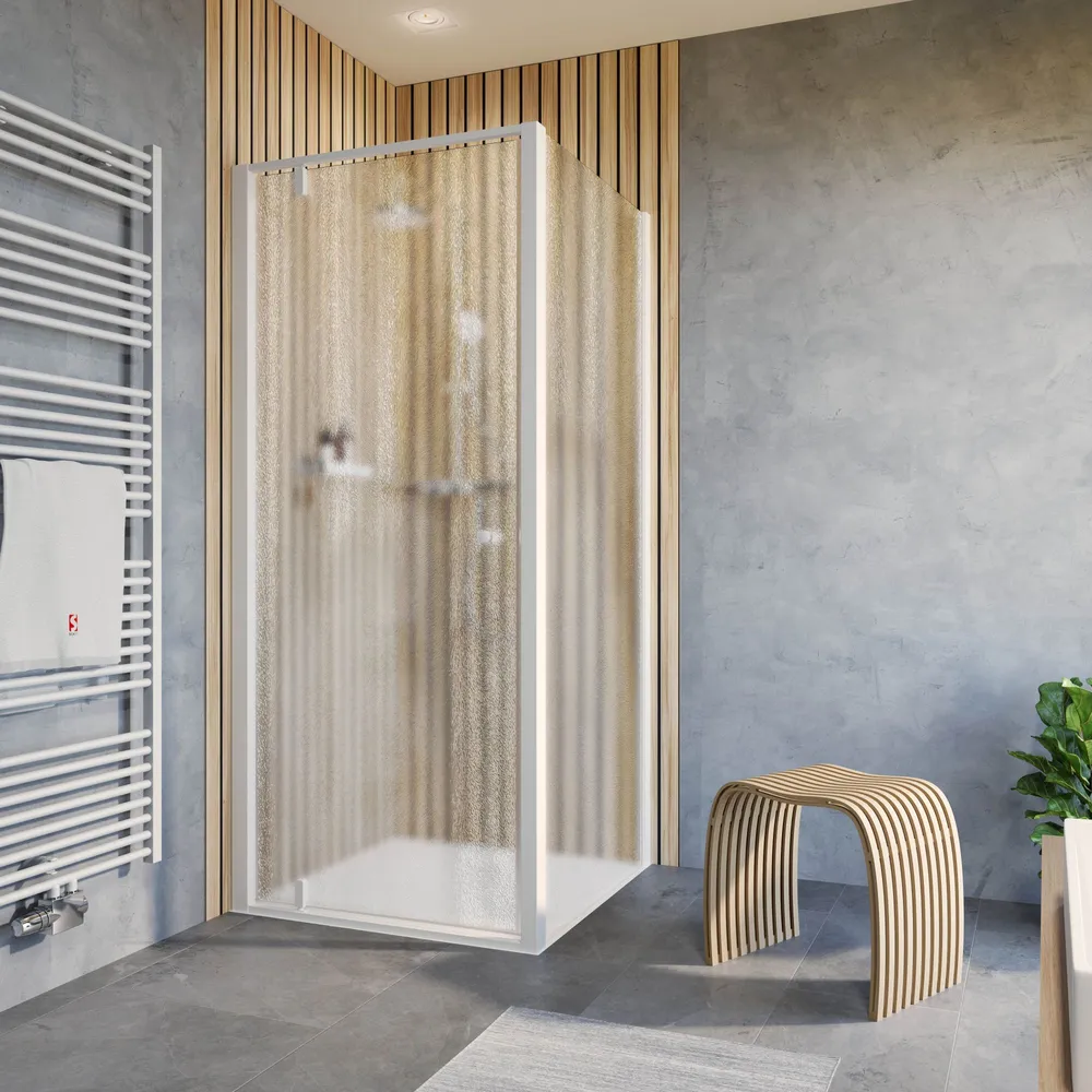 Trend 2.0 - Drehtür inklusive Seitenwand, 900x900 mm, 2000 mm, Mattweiß, Bella