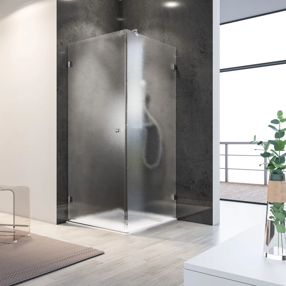 Davita - Drehtür inklusive Seitenwand, 500-1000 mm, Eckig (Heb-Senk), Bella (Chinchilla-Struktur), versiegelt