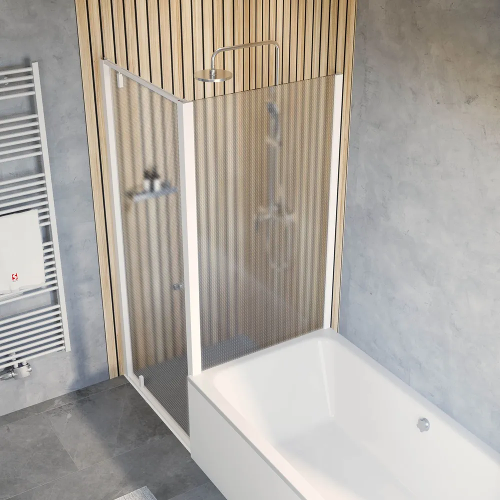 Trend 2.0 - Drehtür inklusive verkürzter SeitenwandDie Drehpunkttüren der Serie Trend 2.0 überzeugen mit überdurchschnittlicher Platzersparnis: Das integrierte Drehlager der Türen gewährleistet mehr Spielraum bei der Nutzung der Wand hinter der Tür. Beispielsweise kann hier ein Heizkörper, Handtuchhalter oder auch ein Deko-Objekt platziert werden. Außerdem kann die Trend-2.0-Drehpunkttür ein Stück weiter geöffnet werden. Ein für diese Serie exklusives Anbauteil stellt der Griff „Rändel“ dar. Dieser punktet mit seiner beinahe vollständigen Rändelung, welche die Haptik des Griffs optimiert: Auch mit nassen Händen liegt er sicher in der Hand. Darüber hinaus überzeugt der Griff optisch, da die Kombination aus glänzender Front und Vorderkante mit der gerändelten Fläche des Griffs harmoniert. Die Montage der Serienartikel kann je nach Einbausituation und persönlichem Belieben wahlweise auf Duschwanne oder Fliese erfolgen. Die Anbringung können Sie zudem entweder mithilfe der beiliegenden Montageanleitung selbst erledigen oder aber unseren geschulten Montageservice hierfür beauftragen.
