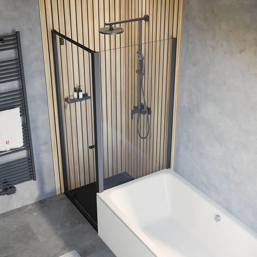 Trend 2.0 - Drehtür inklusive verkürzter Seitenwand, 800x800 mm, 2000/1750 mm, Mattschwarz, Klar hell inkl. duoxil
