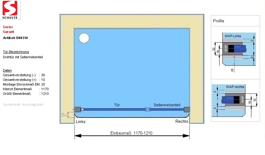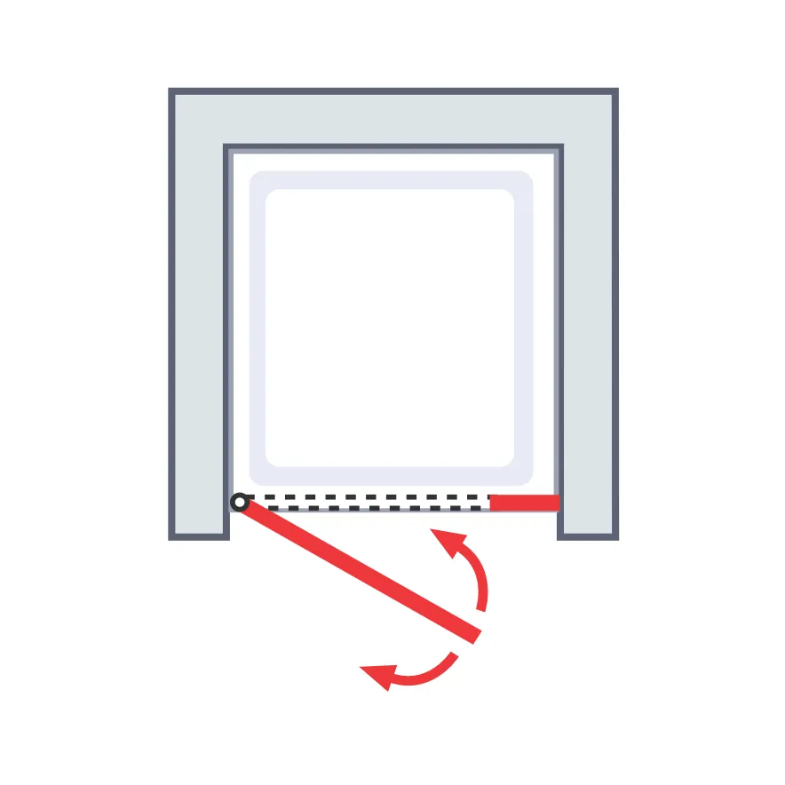 - versetzter Drehpunkt der Tür eignet sich optimale bei bestehenden Regalen, Waschtischen, Heizkörpern etc. im Wandanschlussbereich vor der Duschtür