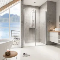 - Langlebiges, qualitativ hochwertiges Drehlager mit integriertem Heb-Senk-Mechanismus: verbesserte Dichtigkeit, reduzierter Verschleiß, komfortables Bewegen der Duschtür