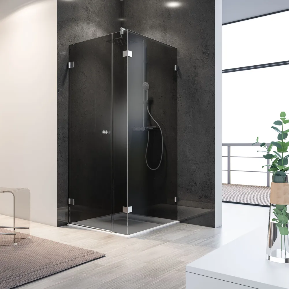 Davita - Drehtür mit Nebenteil inklusive Seitenwand, 600-1600 mm, Eckig (Heb-Senk), Grau-Anthrazit, versiegelt