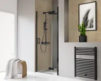 Toura - Drehtür pendelbar an Nebenteil in Nische, 800 mm, 2000 mm, Pendelscharnier „Eckig“, Mattschwarz, Klar hell