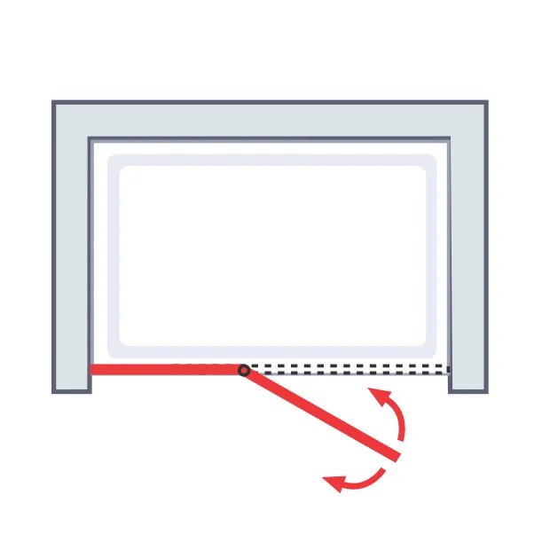 - versetzter Drehpunkt der Tür eignet sich optimale bei bestehenden Regalen, Waschtischen, Heizkörpern etc. im Wandanschlussbereich vor der Duschtür